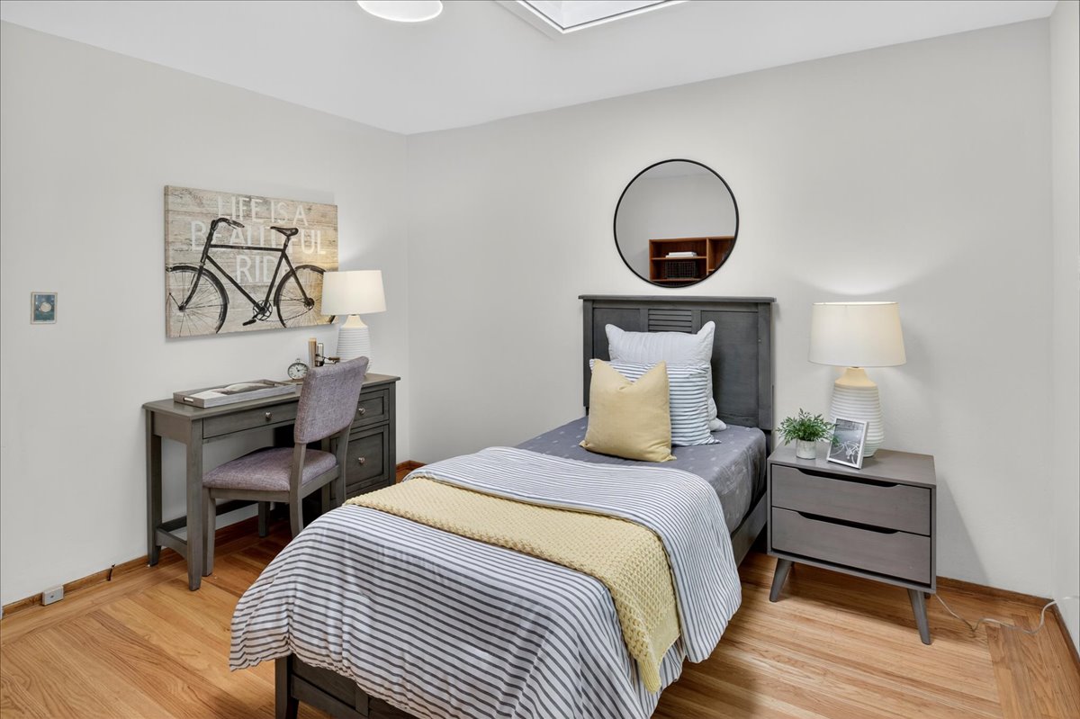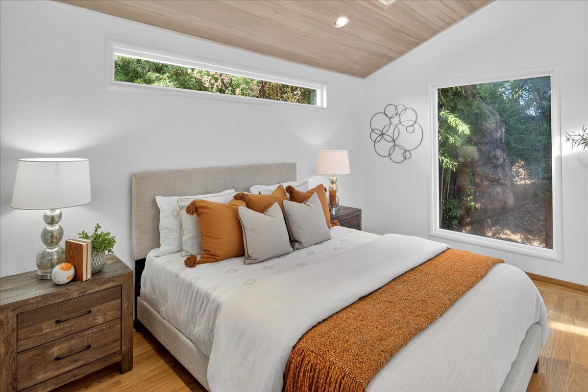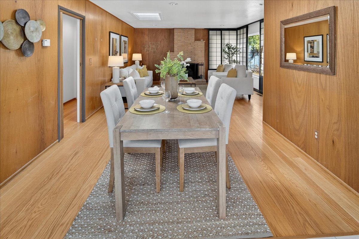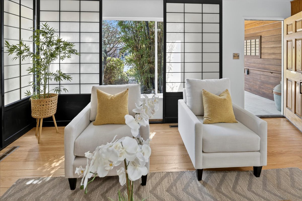 Experience tranquility in this beautifully maintained home featuring stunning Japanese gardens in both the front and backyards. Traditional elements include elegant shoji window coverings in the living room and decorative Japanese lanterns adorning the exterior, enhancing the home’s peaceful ambiance. Enjoy cozy evenings by the wood-burning fireplace in the spacious living room, filled with natural light from skylights thoughtfully placed throughout the home. The primary suite offers a private retreat, while an expanded third bedroom provides an added space, which can be used as an office, playroom, etc. The home also boasts gleaming recently refinished hardwood floors and dual paned windows. Centrally located in the heart of Castro Valley, this home offers easy access to nearby parks, shops, BART, restaurants, and more, combining serene living with everyday convenience. A rare blend of traditional aesthetics and modern comfort, in an ideal location.
