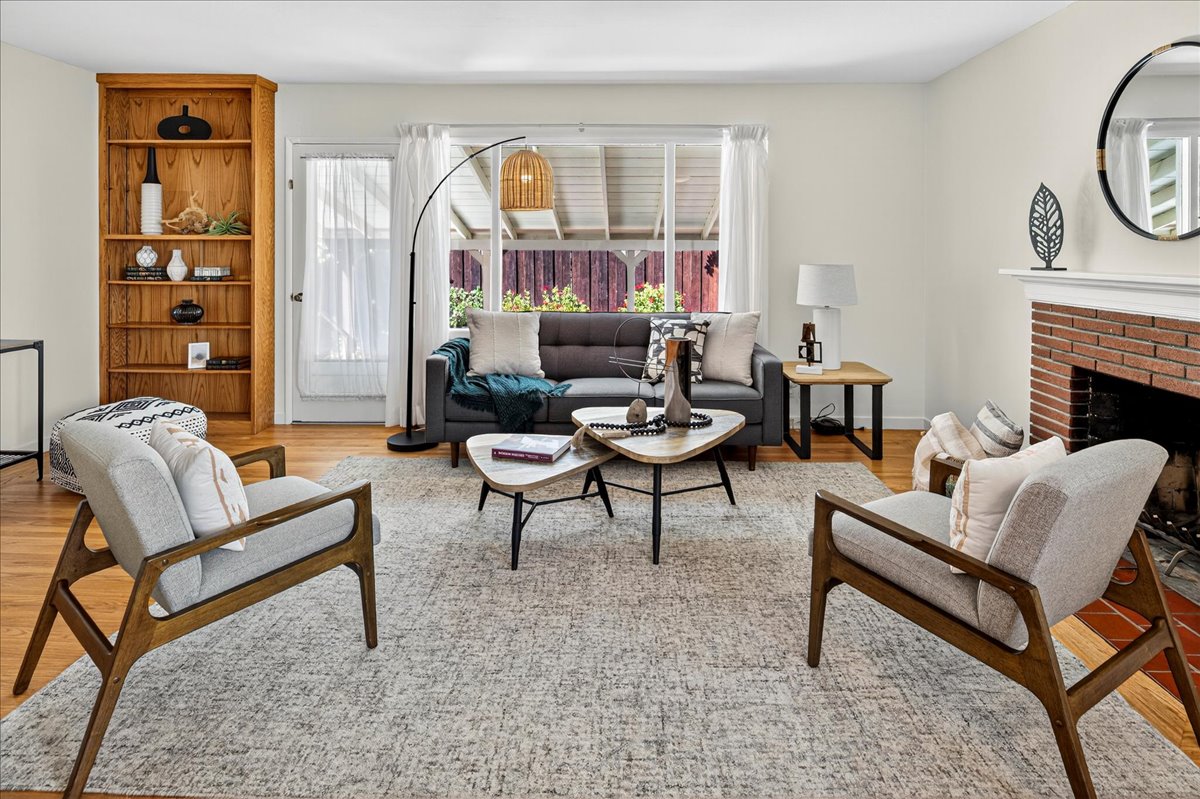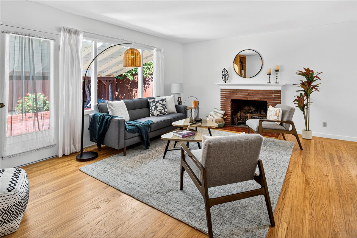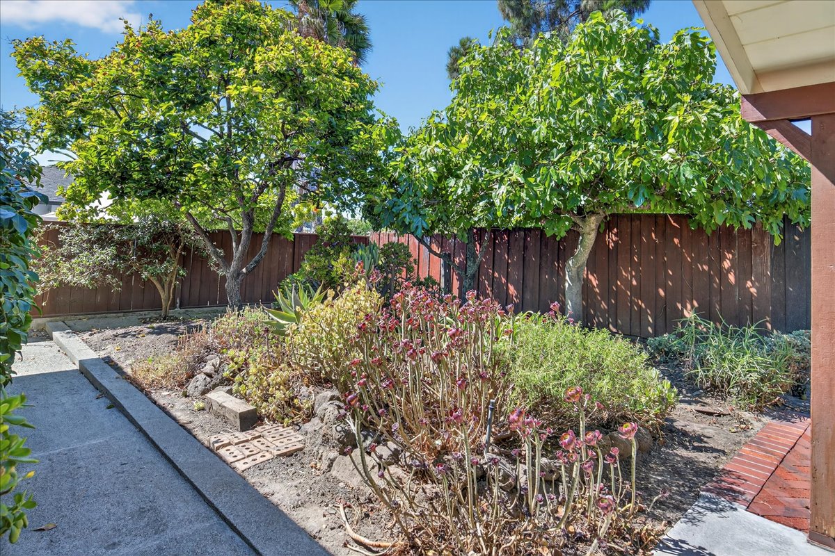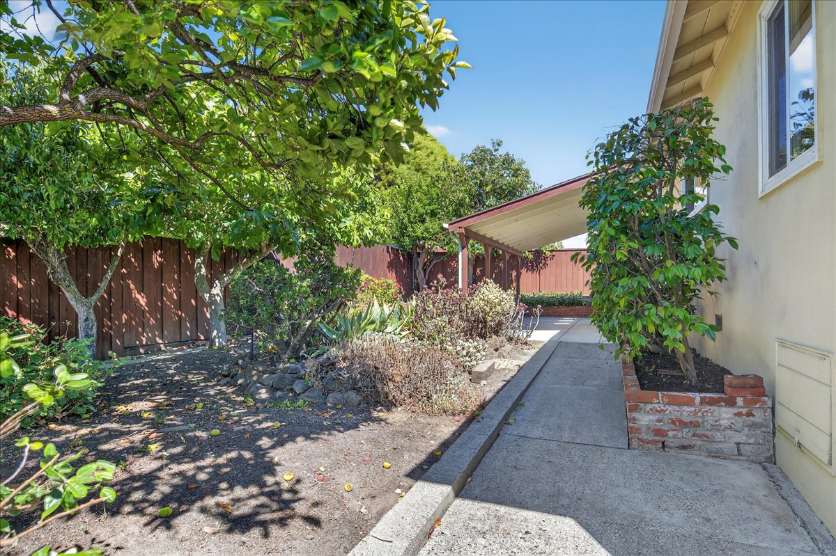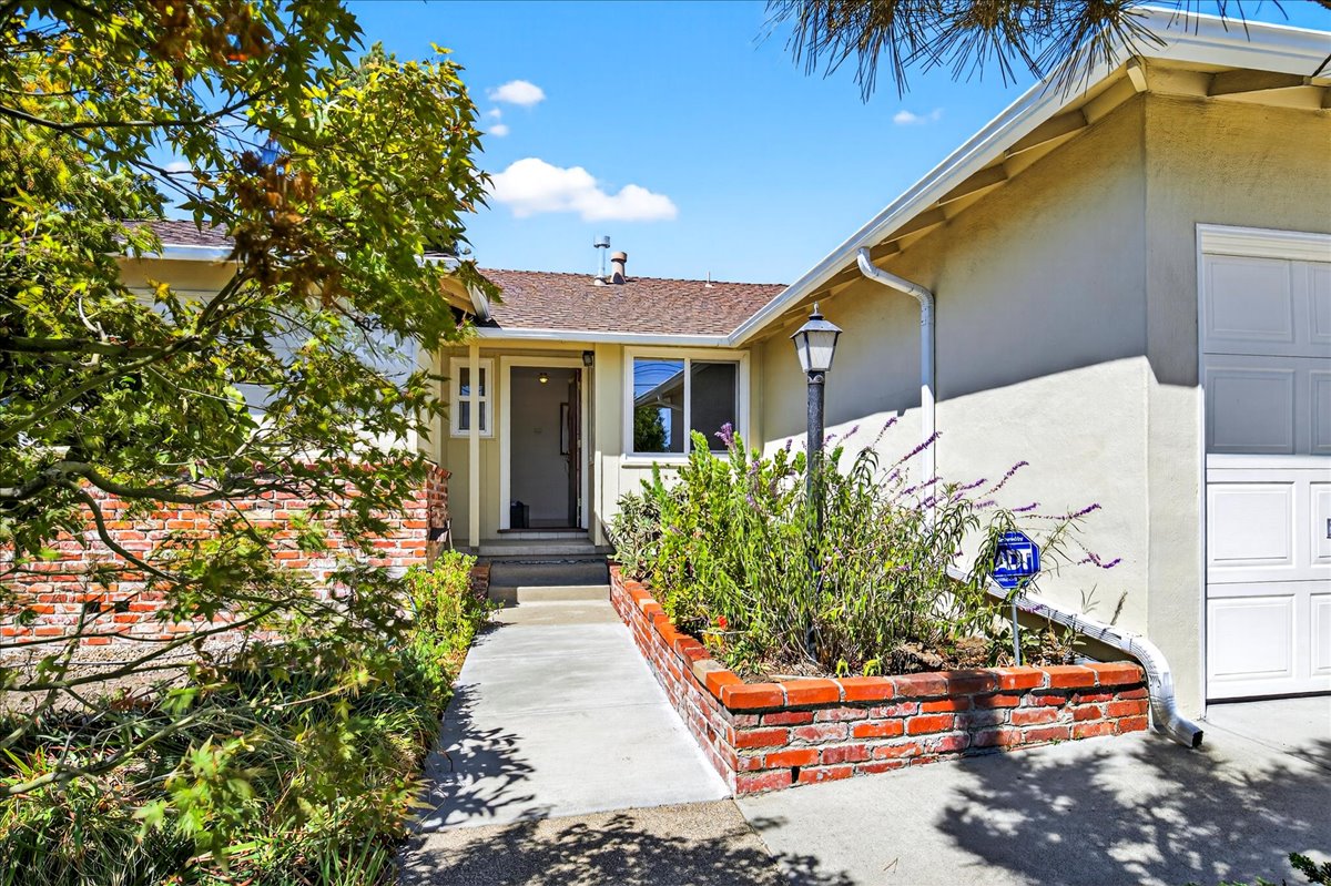 Don’t miss this charming and thoughtfully maintained home, a true gardener’s paradise! The professionally landscaped front yard features a bounty of mature plantings including Fuyu persimmon, Japanese maple and manzanita trees. The backyard continues the theme with additional persimmon trees, a fig tree, succulents, and a covered patio—perfect for relaxing or entertaining in your private outdoor retreat. Inside, you’ll find refinished hardwood floors and a freshly painted interior that create a warm, inviting atmosphere. The cozy living room features a classic wood-burning brick fireplace, built-in bookcase, and is complemented by a beautiful wood paneled front door. The kitchen boasts a reverse osmosis water filtration system, and the home has both an eat-in and formal dining area. The spacious primary bedroom suite offers comfort and privacy, while the attached garage provides ample storage with built-in cabinets. Conveniently located near Marshall Elementary, the Castro Valley library, shopping, restaurants, BART, and more!