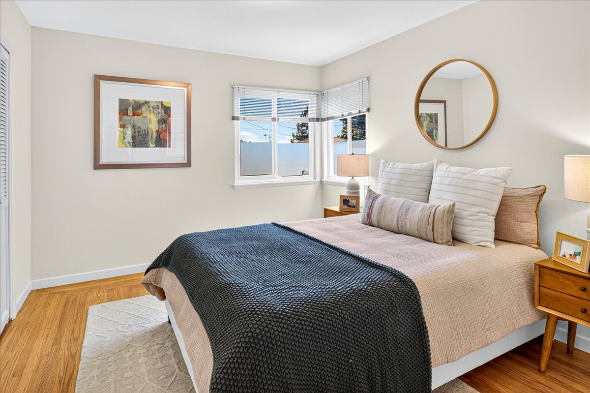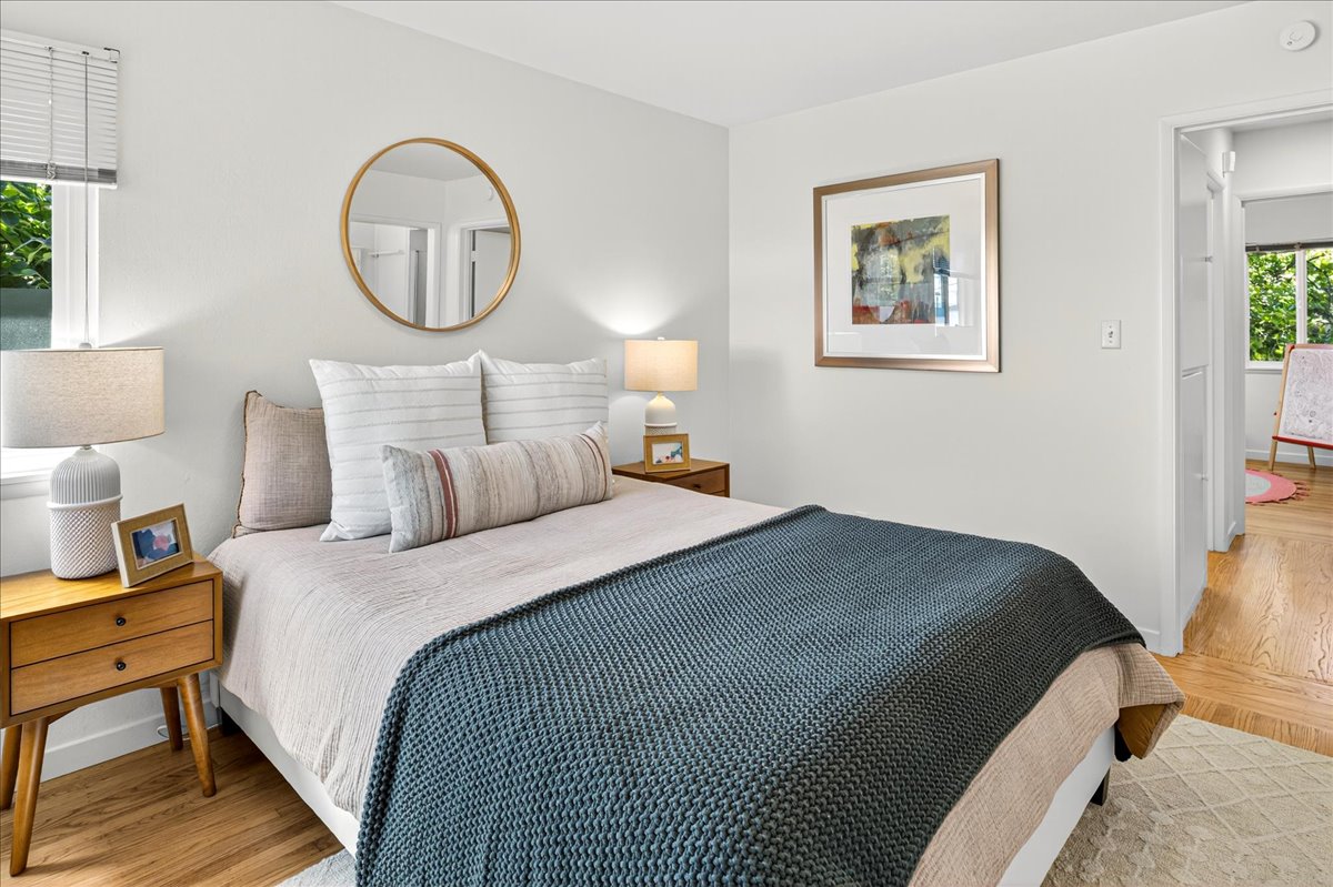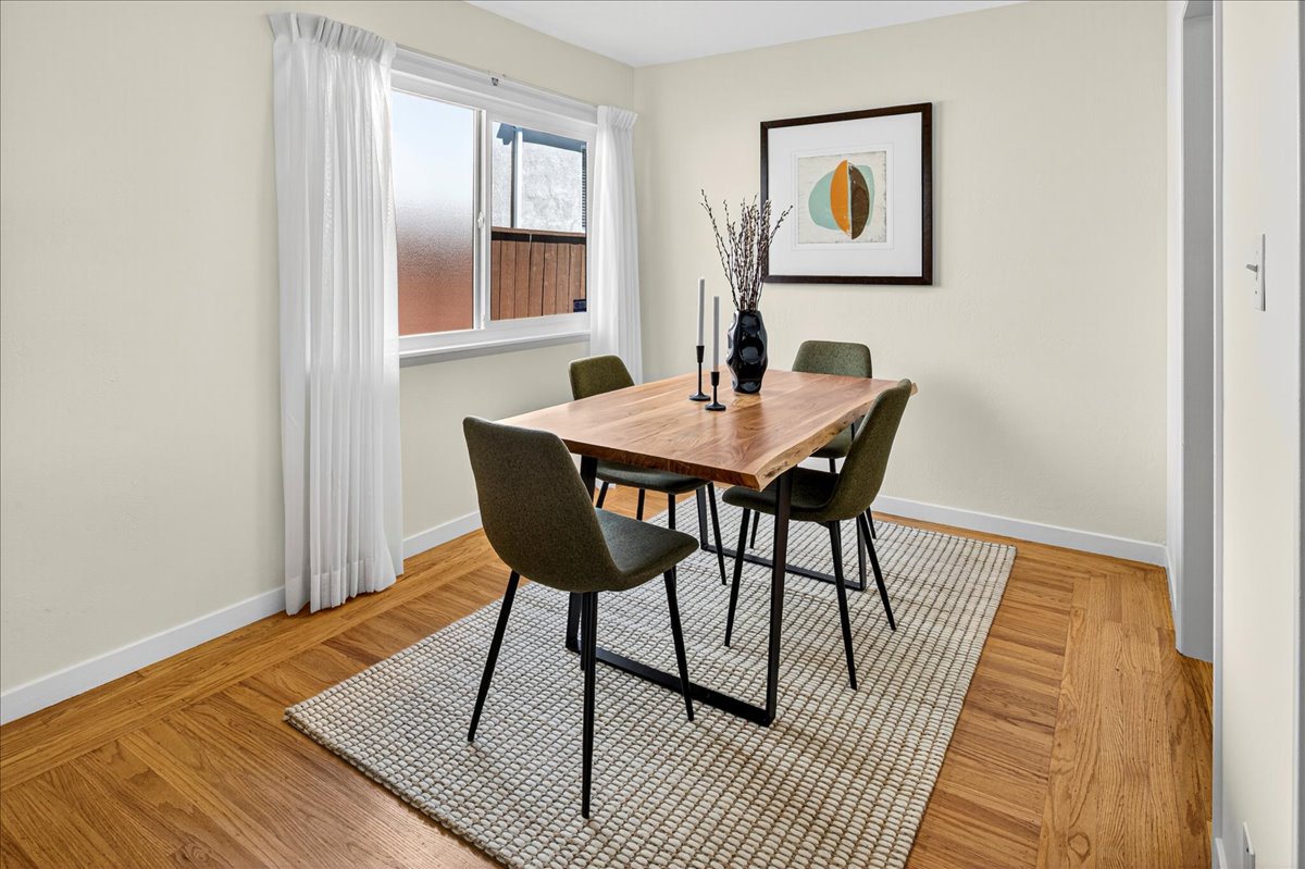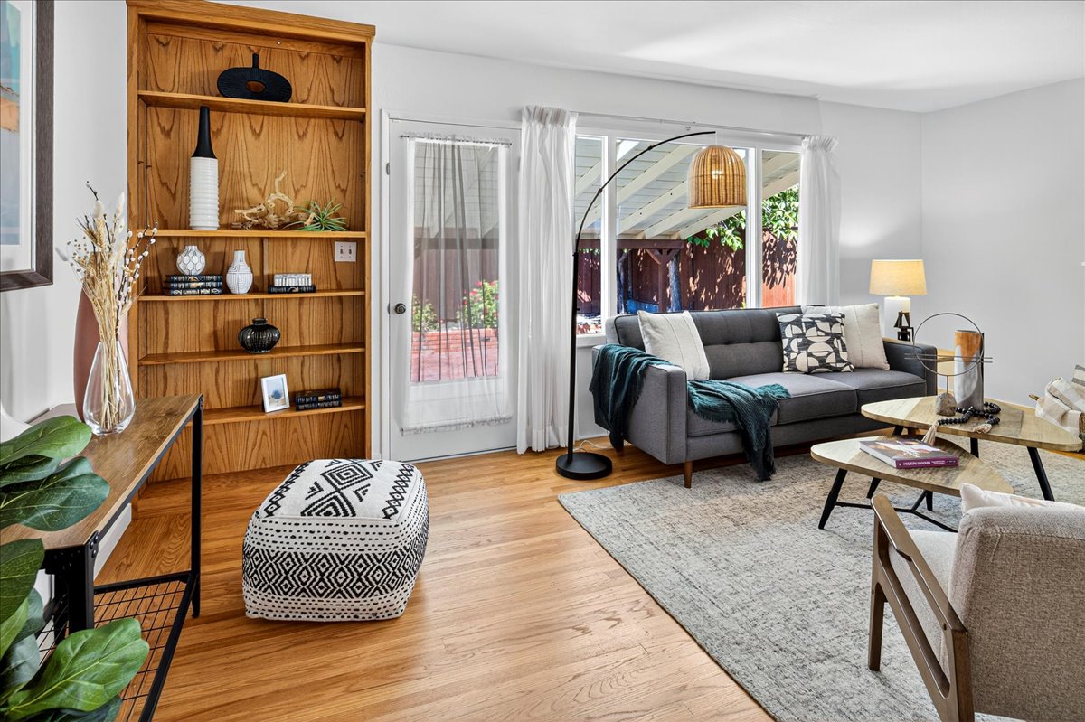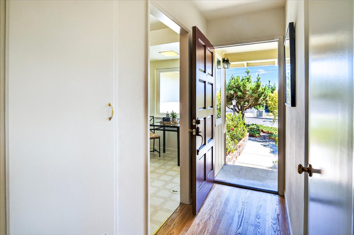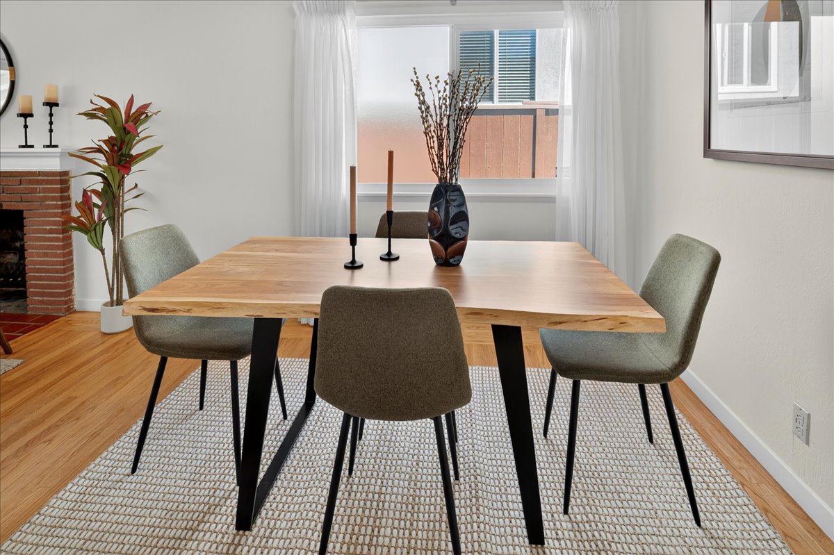 Don’t miss this charming and thoughtfully maintained home, a true gardener’s paradise! The professionally landscaped front yard features a bounty of mature plantings including Fuyu persimmon, Japanese maple and manzanita trees. The backyard continues the theme with additional persimmon trees, a fig tree, succulents, and a covered patio—perfect for relaxing or entertaining in your private outdoor retreat. Inside, you’ll find refinished hardwood floors and a freshly painted interior that create a warm, inviting atmosphere. The cozy living room features a classic wood-burning brick fireplace, built-in bookcase, and is complemented by a beautiful wood paneled front door. The kitchen boasts a reverse osmosis water filtration system, and the home has both an eat-in and formal dining area. The spacious primary bedroom suite offers comfort and privacy, while the attached garage provides ample storage with built-in cabinets. Conveniently located near Marshall Elementary, the Castro Valley library, shopping, restaurants, BART, and more!