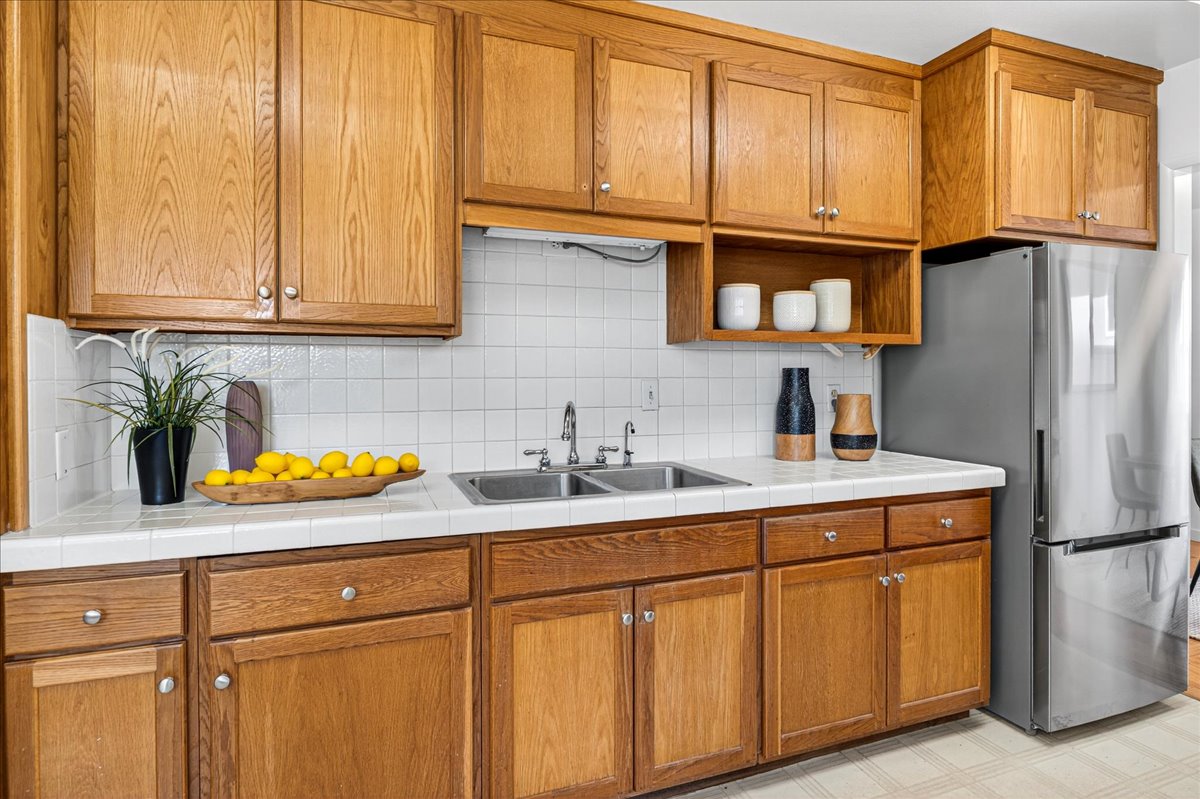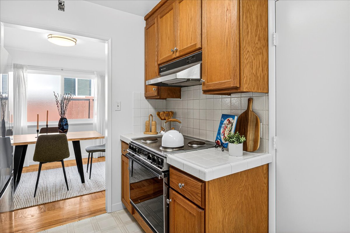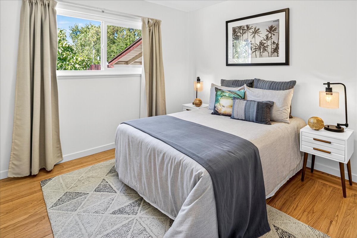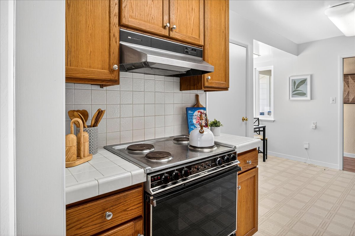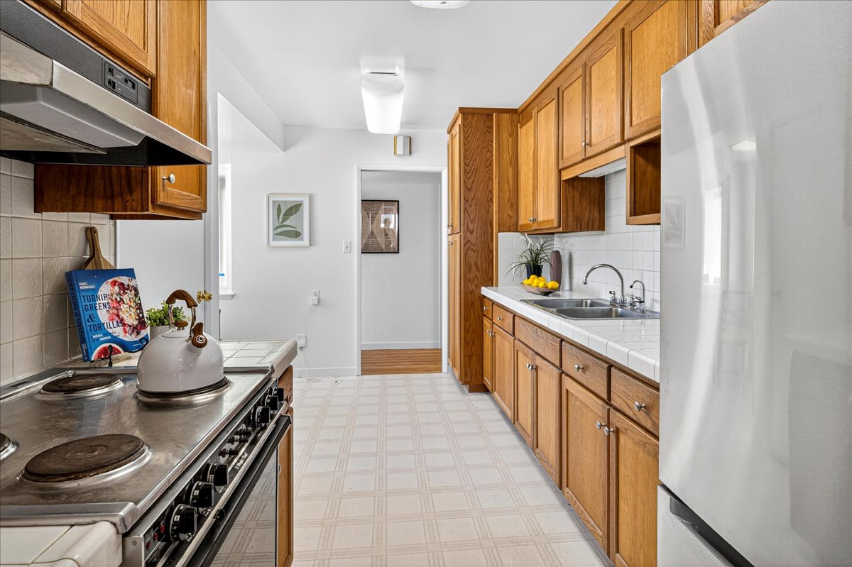 Don’t miss this charming and thoughtfully maintained home, a true gardener’s paradise! The professionally landscaped front yard features a bounty of mature plantings including Fuyu persimmon, Japanese maple and manzanita trees. The backyard continues the theme with additional persimmon trees, a fig tree, succulents, and a covered patio—perfect for relaxing or entertaining in your private outdoor retreat. Inside, you’ll find refinished hardwood floors and a freshly painted interior that create a warm, inviting atmosphere. The cozy living room features a classic wood-burning brick fireplace, built-in bookcase, and is complemented by a beautiful wood paneled front door. The kitchen boasts a reverse osmosis water filtration system, and the home has both an eat-in and formal dining area. The spacious primary bedroom suite offers comfort and privacy, while the attached garage provides ample storage with built-in cabinets. Conveniently located near Marshall Elementary, the Castro Valley library, shopping, restaurants, BART, and more!