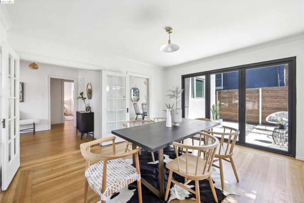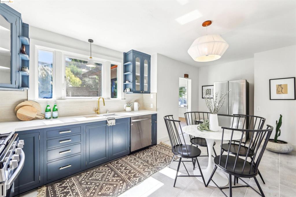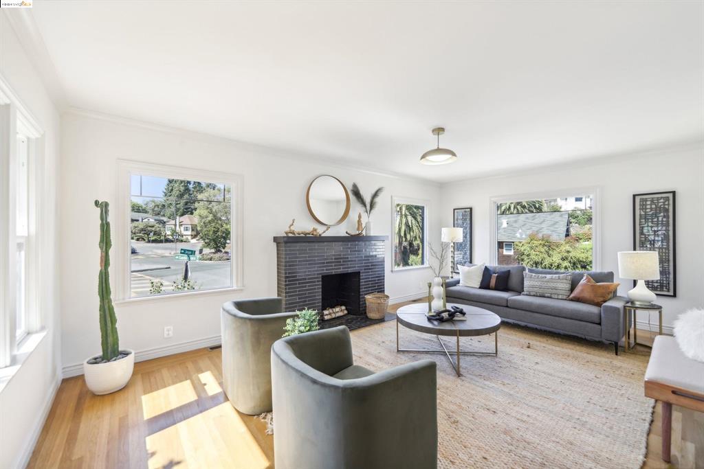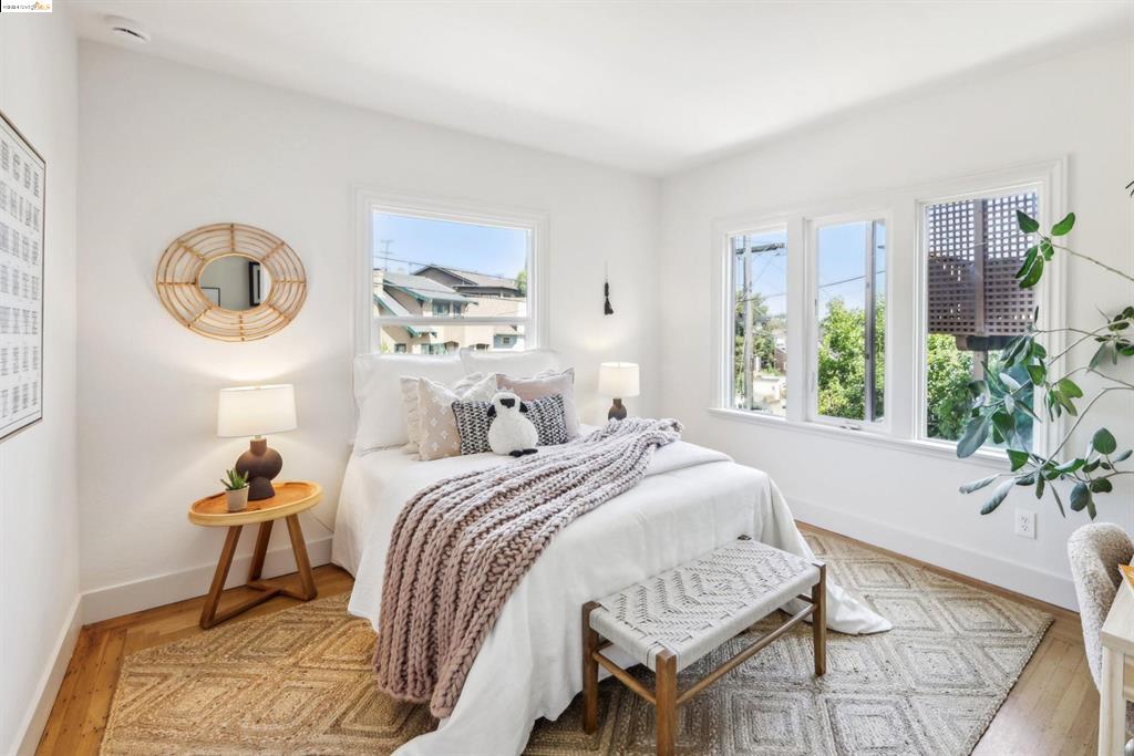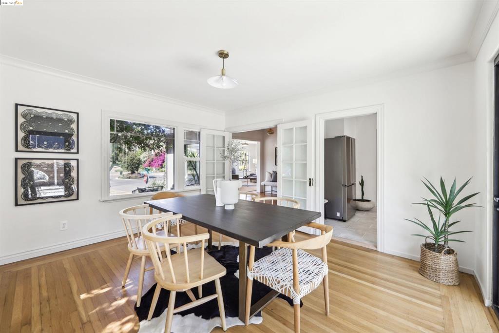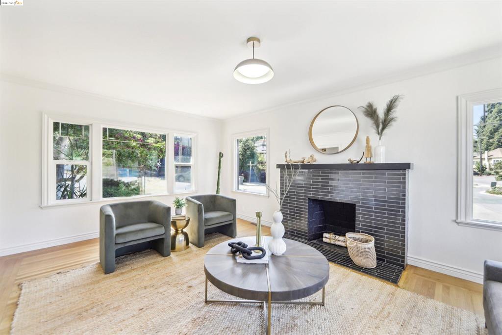 Discover the rare opportunity to own a home that perfectly blends urban excitement with serene living in Oakland’s iconic Grand Lake neighborhood. This 4-bedroom, 2-bath residence, offering ADU potential, welcomes you with an expansive entryway. Inside, you’ll be captivated by the beautifully refurbished hardwood floors and the circular main level layout, ideal for effortless entertaining. To the right, a floor-to-ceiling window wall in the dining room opens to the backyard, perfect for gatherings. To the left, a spacious living room with large windows offers charming neighborhood views and features a gas-burning fireplace. The newly updated eat-in kitchen boasts quartz countertops and stainless steel appliances for style and functionality. The main floor includes two bedrooms and a charming bathroom, while the upstairs features a light-filled third bedroom. Adjacent to the kitchen, stairs lead to the basement ensuite with ADU potential, with its own living room, bathroom, and large bedroom. This versatile space, with its optional separate entrance off the lower patio, offers endless possibilities. Located just steps away from the renowned Lake Merritt farmer’s market, and surrounded by Oakland’s finest restaurants and boutiques, this home offers an enviable lifestyle.
